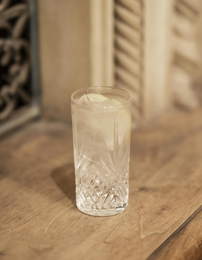Rum Bacardi Carta Blanca, Lime speziato con paprika dolce, Tonica premium Indian, Ramoscello di rosmarino
